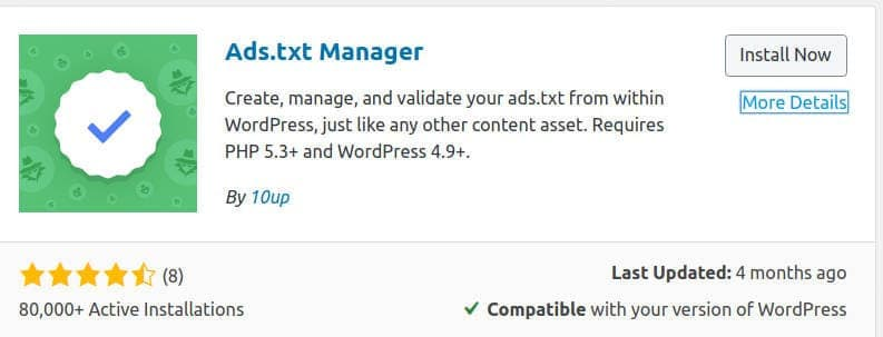 Install the plugin via the plugin installer. Activate the plugin. Under Settings, find Ads.txt and declare your records. For example to declare Google Adsense insert google.com, pub-0000000000000000, DIRECT, f08c47fec0942fa0 (changing the 0000000000000000, green color in the image to your publisher ID).